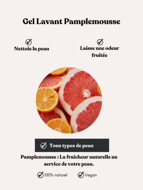 - Parfum rafraîchissant : Laissez-vous séduire par l’odeur revitalisante du pamplemousse qui dynamise vos sens.