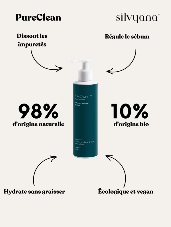 Découvrez la mousse purifiante PureClean, une révolution dans le soin de la peau. Grâce à sa texture innovante, ce nettoyant est conçu pour dissoudre efficacement les impuretés tout en régulant l’excès de sébum. Enrichi en ingrédients naturels, il hydrate votre visage sans obstruer les pores, laissant votre peau à la fois propre et merveilleusement hydratée. Offrez à votre peau un nettoyage en profondeur tout en préservant son équilibre naturel.